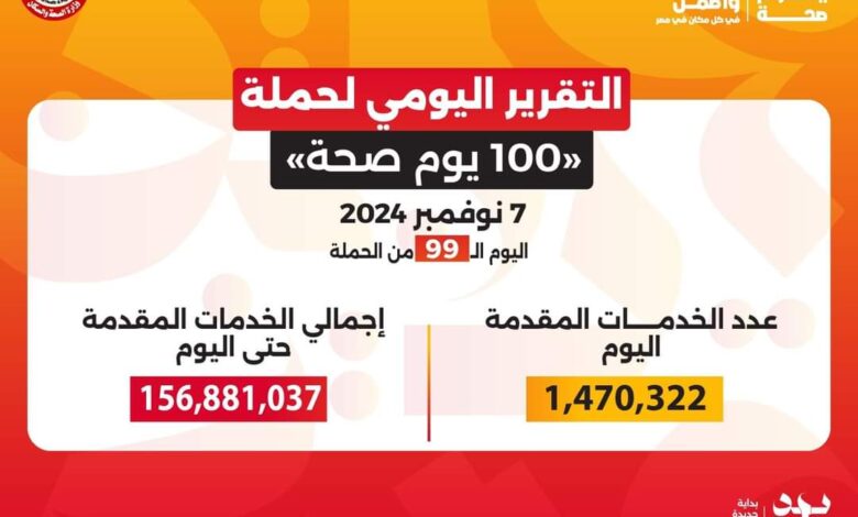 حملة “100 يوم صحة” قدمت أكثر من 156 مليون خدمة مجانية خلال 99 يوما